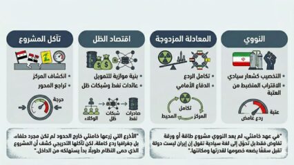 هذا ما يفسر لماذا بدى البرنامج النووي، في ظل خامنئي، أقرب إلى مركز معنوي يدور حوله مشروع النفوذ كله. فكل تقدم في التخصيب كان يرفع منسوب الهيبة الداخلية ويعزز صورة “إيران التي لا تنحني”، فيما كان المحور الإقليمي يترجم هذا التقدم إلى نفوذ ميداني، من جنوب لبنان إلى البحر الأحمر. هكذا صار النووي في الداخل عنوان سيادة، وفي الخارج مظلة نفسية وسياسية لشبكات الردع. لم تعد المسألة سؤالاً تقنياً عن الوقود والطاقة، بل سؤالاً عن من يملك حق فرض حدود القوة في الشرق الأوسط. وهذا بالضبط هو المعنى الذي أراده خامنئي من الملف النووي.
